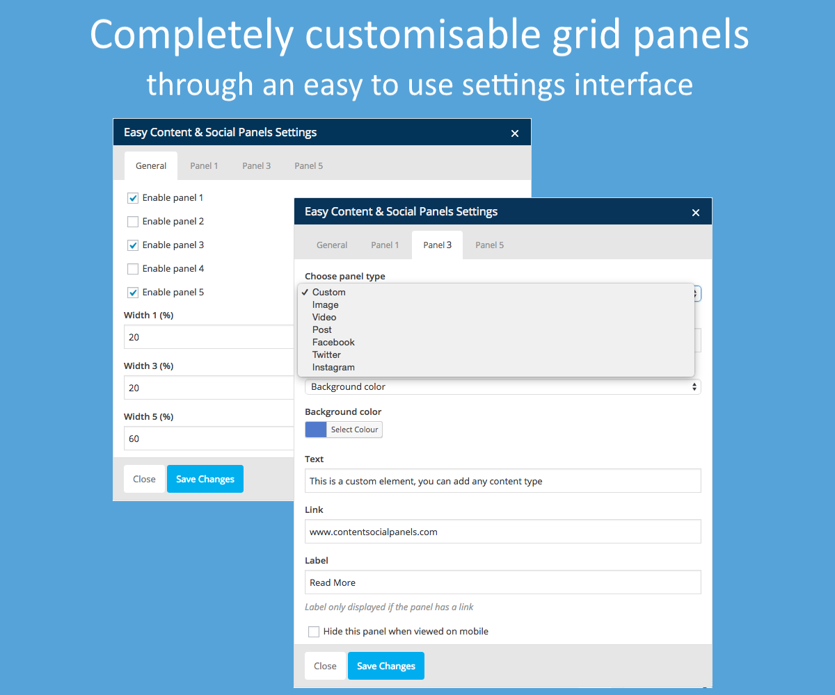 - Perfekt für die Anzeige von Beiträgen, sozialen Inhalten oder Videos in Panels auf Ihrer Website