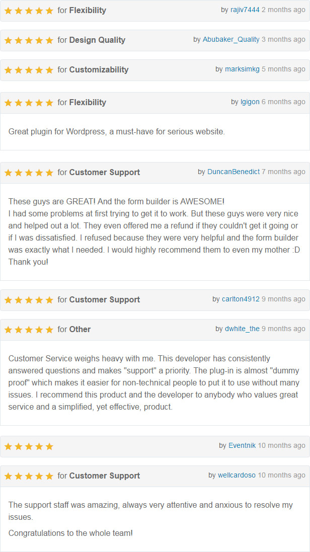 Die Verwendung dieses Plugins ist super einfach und macht Spaß, denn Sie können wunderschöne Formulare erstellen, anpassen und erstellen, bestehende Formularvorlagen für das Design anwenden und sie direkt auf Ihrer WP-Site verwenden. Sie können die Daten für die Formularübermittlung per E-Mail erhalten und sie in der Datenbank speichern, die Sie dann über das Backend des Plugins in CSV exportieren können.