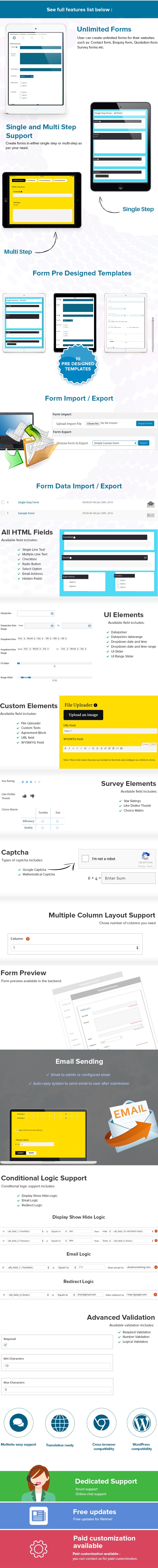 Ultimativer Form Builder ist ein PREMIUM WordPress Plugin was dir erlaubt zu erstellen unbegrenzt ansprechende Formulare (Einzelschritt oder Mehrfachschritte). Jede Art von Formen (Kontaktieren Sie uns, Opt-in, Call-to-Action, Umfrage, Angebot, Anfrage oder irgendetwas) kann mithilfe von Drag & Drop-Formularerstellung erstellt werden.