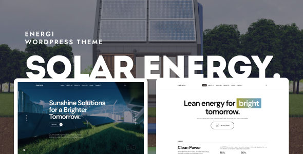 Energi ist ein WordPress-Vorlage für Solar- und erneuerbare Energien, das für Solarenergieunternehmen und -agenturen entwickelt wurde. Vollgepackt mit allen Funktionen, die Sie für Ihre WordPress-Site für Solar- und erneuerbare Energien benötigen. Präsentieren Sie Ihre Solarenergieprojekte mit Stil, gewinnen Sie neue Kunden und bauen Sie Ihr Solarenergiegeschäft online aus. Beginnen Sie noch heute mit Energi!