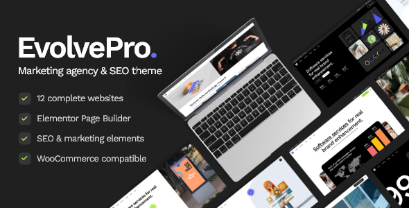 Gewidmet für alle Arten moderner Marketingunternehmen und Werbeseiten, EvolvePro ist ein Thema, das entwickelt wurde, um Sie bei Ihrer Mission, Unternehmen und Marken zu verbessern, zu unterstützen. Das Thema bietet eine reichhaltige Auswahl an Elementen und Layouts für digitale Agenturen, Branding, Werbetafeln und Poster sowie andere Arten von Werbefirmen, vollständige Kompatibilität mit Elementor Page Builder und vieles mehr. Holen Sie sich noch heute EvolvePro, um Ihre Dienstleistungen und Erfolge ganz einfach zu präsentieren und ein noch breiteres Publikum zu erreichen!