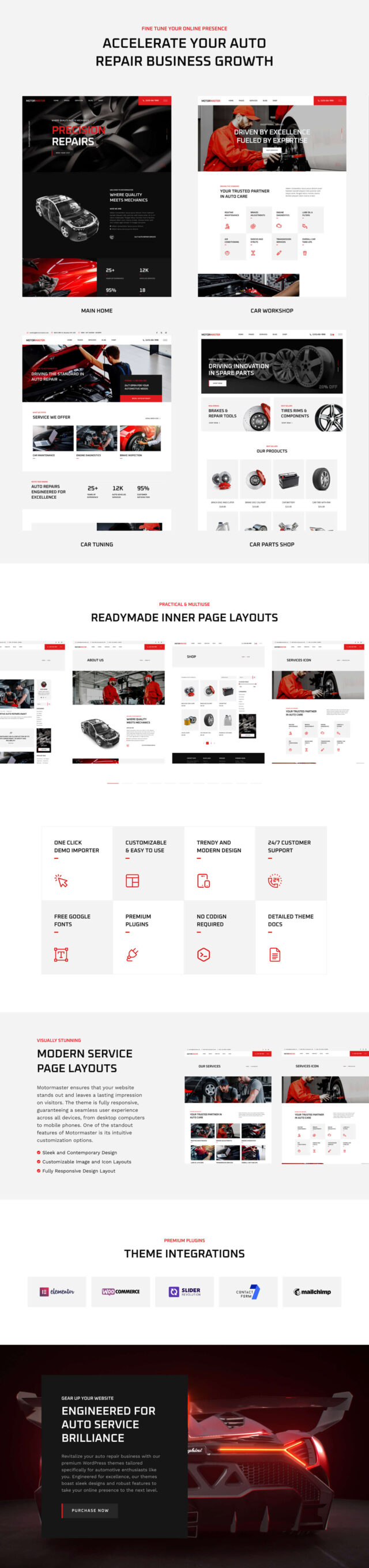 Der Motormeister Das WordPress-Vorlage „Autoreparatur und Autoservice“ ist die ultimative Lösung für Automobilunternehmen, die eine starke Online-Präsenz aufbauen möchten. Motormaster ist speziell auf Autowerkstätten, Autoservicezentren und Autohäuser zugeschnitten und bietet eine umfassende Reihe von Funktionen, die auf die besonderen Anforderungen der Automobilindustrie zugeschnitten sind.
