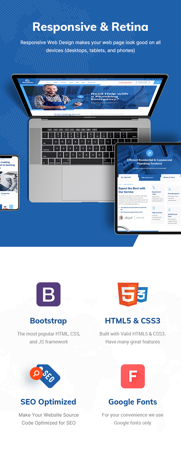 Plumbio ist als sauberes und modernes, ansprechendes WordPress-Layout für Sanitärdienste konzipiert. Dieses Thema ist perfekt für jede Art von Sanitär- oder Wasserdienstleistungen konzipiert und organisiert. Sie können die Themenlayouts einfach ändern und erweitern. Layout mit einem sauberen Homepage-Layout mit einem Header-Stil und mehr als 15 verschiedenen Innenseiten enthalten.
