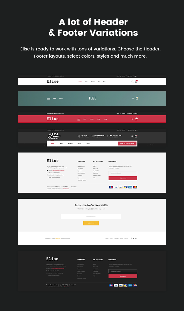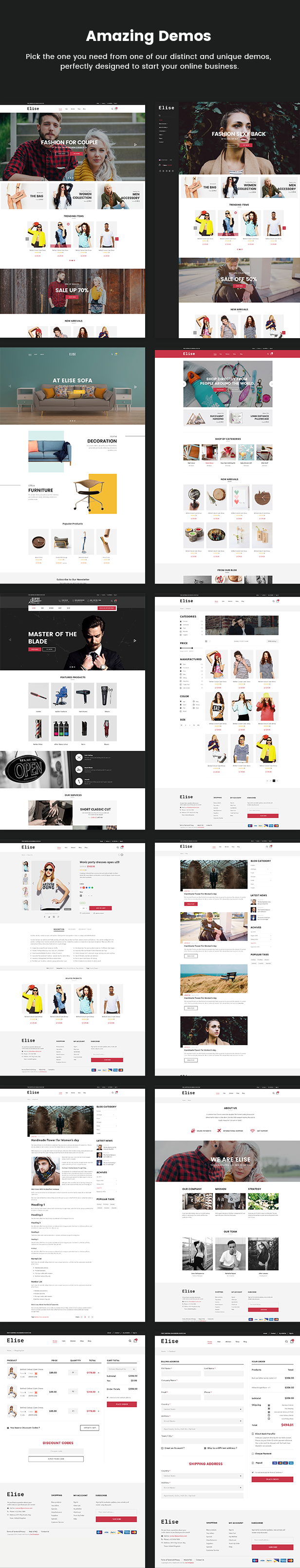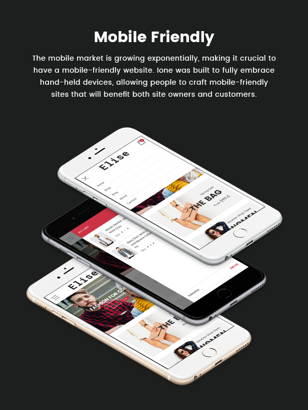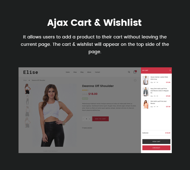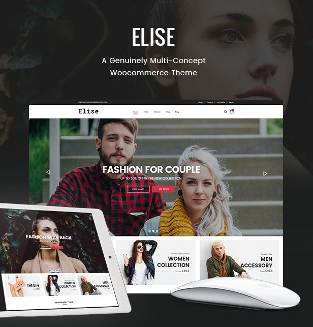 Elise ist ein elegantes WooCommerce-Layout, das sich für den Verkauf von Kleidung, Mode, Mode, Herrenmode, Damenmode, Accessoires, Digital, Kinder, Uhren, Schmuck, Schuhen, Kindern, Möbeln, Sport, Werkzeug usw. eignet Die responsive Breite passt sich automatisch an jede Bildschirmgröße und Auflösung an.