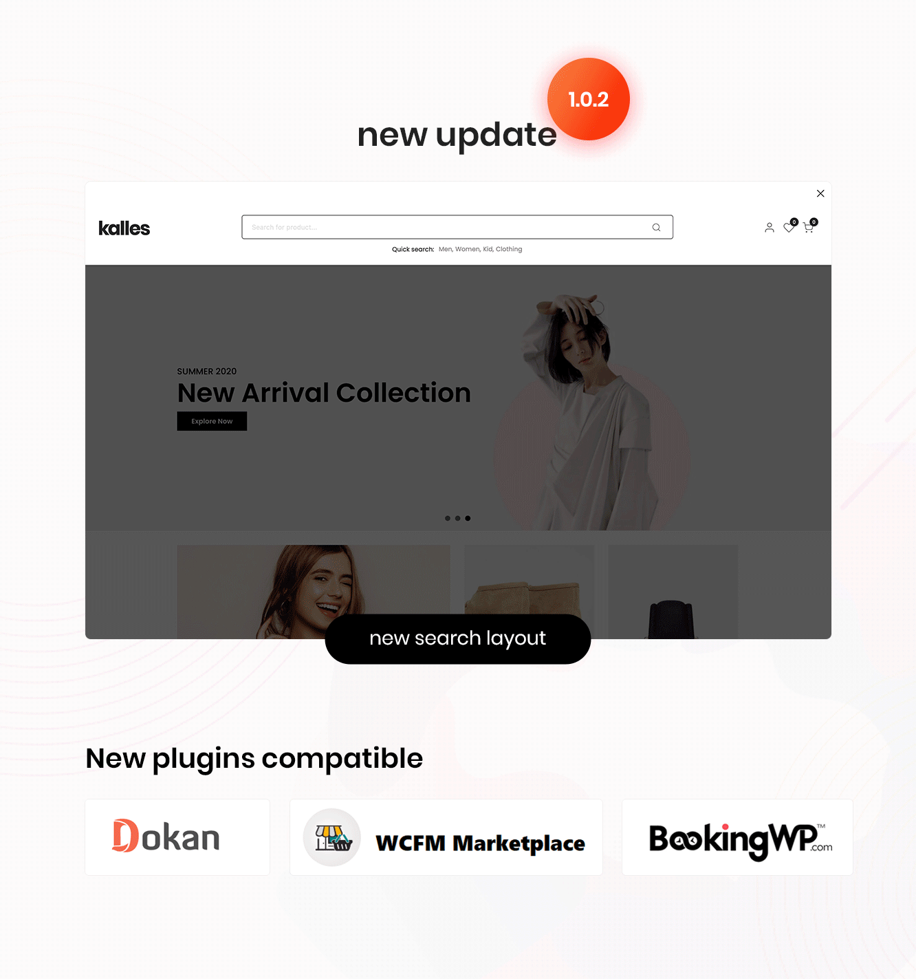 Die Suchfunktion wurde verbessert und ist für die Benutzer komfortabler. Wir haben viel Zeit damit verbracht, das Kundenverhalten zu untersuchen und die UI/UX für Suchfunktionen auf Kalles zu optimieren. Es zeigt nicht nur einfach Ergebnisse über Ajax an, sondern ist auch für Benutzerfreundlichkeit mit einer sauberen Benutzeroberfläche optimiert. Darüber hinaus können Sie auch einige Schlüsselwörter vorschlagen, auf die Sie sich konzentrieren möchten.