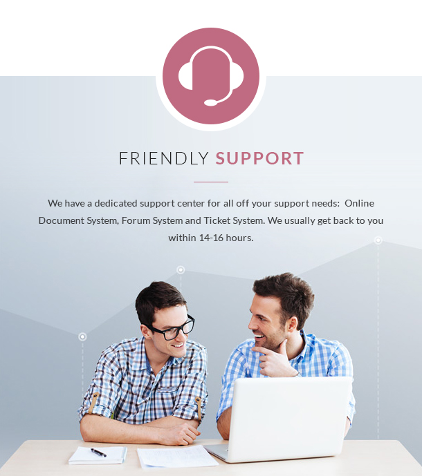 Wir haben ein spezielles Support-Center für alle Ihre Support-Anforderungen. Es beinhaltet unsere Dokumentation. Gemeinschaftsforum und ein fortgeschrittenes Ticket System für alle Fragen, die Sie haben. Wir melden uns in der Regel innerhalb von 14-16 Stunden bei Ihnen. (ausgenommen Ferienzeiten, die länger dauern können).