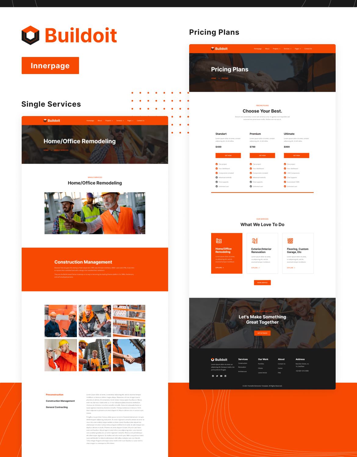 Buildoit ist ein Elementor-Vorlagenkit mit vollem Funktionsumfang für Bauwesen, Immobilien, Gebäudearchitektur, Industrie, Fertigung, Mechanik usw.