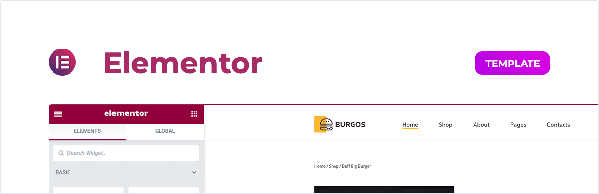 Burgos ist ein stilvolles und modernes WordPress-Vorlage für jede Website mit Bezug zu Lebensmitteln, Fast Food oder Essenslieferungen. WooCommerce-Onlineshop mit benutzerdefinierten Elementor-Widgets für Produkte.