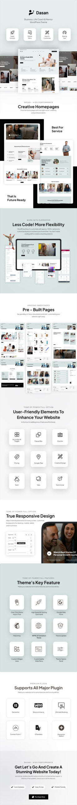 Dasan – Life-Coach- und Mentor-Website-WordPress-Layout, dieses Layout wurde speziell für alle Life-Coach-, Redner- und Berufsberatungs-, Personalportfolio-, Mental-Wellness-Coach-, Geldmanagement-, Finanz- und Vermögensmanagement-Mentoren, Unternehmensschulungen, Teambuilding-Spezialisten und Schulungsunternehmenswebsites entwickelt. Einfach anpassbare Designblöcke für Eventmanagement, Mehrzweck-Tutor und individueller Life-Coach, Finanzberater, Steuerberater, Landingpage-Website-Designs für Rechts- und Rechtsanwälte.