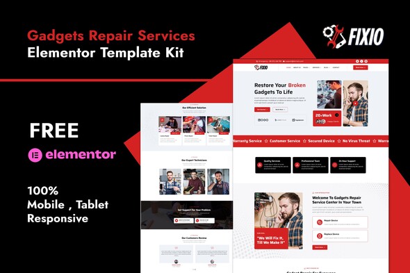 Fixio – Reparaturdienste für Gadgets und Elektronik Das Elementor-Vorlagenkit wurde für Reparaturwerkstätten für Gadgets und Elektronik, Datenrettungs- und Festplattenreparaturunternehmen oder die Reparatur und Wartung von Computern und Laptops entwickelt.