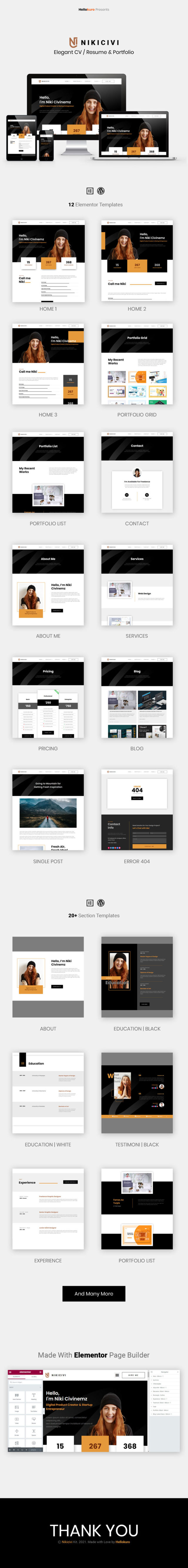 Nikicivi – Elegantes CV/Resume & Portfolio Elementor Template Kit