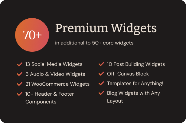 - 70+ benutzerdefinierte Premium -Elementor -Widgets