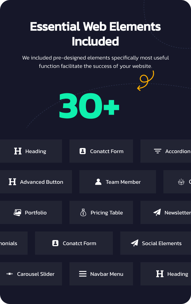 - Über 30 benutzerdefinierte Elementor-Widgets