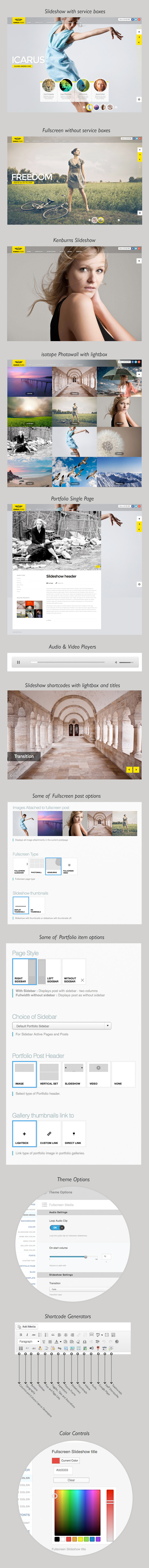 iCarus ist ein Fullscreen Responsive Studio Template für WordPress mit einer Vielzahl von Vollbild-Posts. Es bietet Fullscreen-Homepages mit Service- / Produktblöcken für Kunden, um ihre Produkte mit der größten Wirkung zu präsentieren. Es ist auch mit Shortcodes wie Staff Blocks und Testimonials ausgestattet und somit ideal für Agenturen, Foto-, Design- oder Videostudios. Das Template ist WPML-fähig und enthält .po .mo Sprachdateien. Der Social-Header-Bereich wurde speziell für WPML-Widgets und Social-Link-Widgets entwickelt. Das Template ist mit erweiterten Themenoptionen, Shortcode-Generatoren und intuitiven Seitenoptionen ausgestattet.