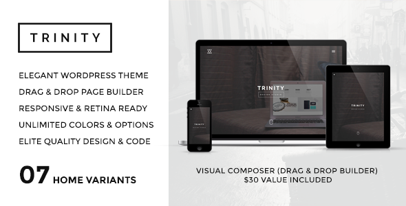 TRINITY - Ein einfaches, minimales und elegantes WordPress Template mit Drag & Drop Page Builder (WPBakery Page Builder für WordPress), perfektem Responsive (Bootstrap 3 Framework) & Retina Ready Layout.