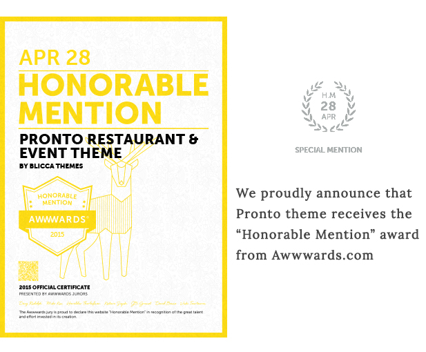 Pronto ist ein voll reagierendes Premium-Wordpress-Layout, das zu jedem Restaurant & Food-Websites passt. Es ist mit Bootstrap 3 gebaut und enthält viele tolle Funktionen. Es enthält Premium Visual Composer Seitengenerator, Premium Revolution Slider und Premium EventON Kalender-Plugin. Pronto enthält Font Awesome darin. Sie können auch die unglaubliche Option "Richtung abrufen" für Ihre Google Maps verwenden.